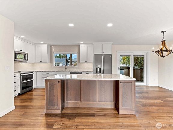 Gorgeous kitchenNatural lightGiant islandFully updated bathsRemodeled bathsPicture windowsCorner lot
