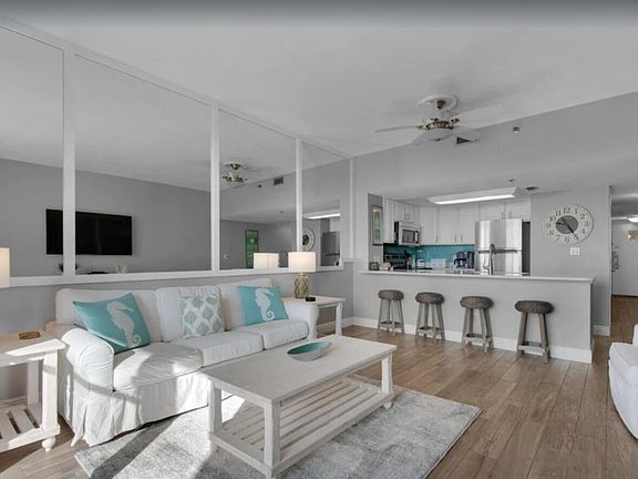 Come see this one bedroom, newly updated ground floor unit located in the heart of Destin! There is no wait for elevators or stairs as you can walk off your patio right onto the pool deck! Just beside the pool is the boardwalk which leads to the sugar sands of the Gulf of Mexico! The photos speak for the quality of renovation that was recently done. The kitchen has beautiful quartz countertops and new stainless-steel appliances. The living room has a great view of the pool, and the Gulf of Mexico is just beyond the pool deck. This unit features a king size bed in the master, two closets, and an attached half bath leading into the full bath. The twin size bunk beds in the hallway are perfect for children. Each bed has its own lighted space.(There is also a has a queen size sleeper sofa in the living room) Beachservices (chairs and umbrellas) are available to rent on site. A laundromat is conveniently located on the ground level. HOA fees include utilities and cable. Sundestin offers indoor and outdoor pools, a hot tub, splash pad for the little ones, and a tiki hut near the pool and beach for snacks and drinks! There is also a fitness center, gift shop, and small convenience store with grocery items and alcoholic beverages. The building is very close to many great restaurants and attractions! Great rental history!! Call your Realtor today to schedule a showing.