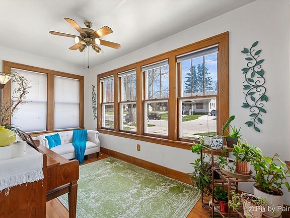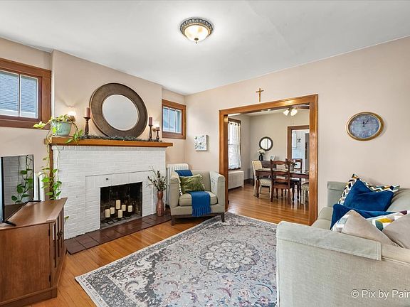 Charming 2 bedroom, 2 bath ranch home located in the heart of Elgin. You will love the original hardwood floors throughout. New York style kitchen with pantry, large dining room, living room with fireplace, sunroom, inviting enclosed front porch. There's additional living space in the Full basement partially finished with 2 bonus rooms, family room, and tons of storage space. Private fenced backyard with a flagstone patio & firepit. Tons of beautiful perennials surround the home! New landscaping, new front steps, new sewer line to house. NEW Roof April 2024. This home has been lovingly cared for and meticulously maintained! Walking distance to the Fox River & more! Show with confidence! This is a must see!