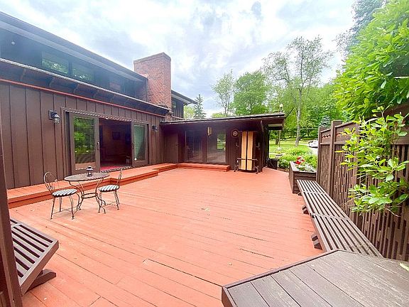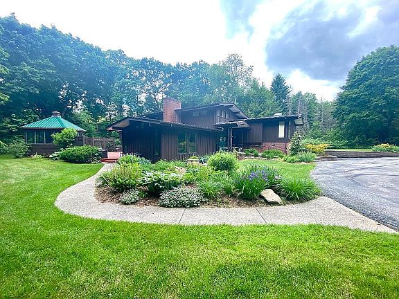GORGEOUS GOURMET KITCHEN and so much more! One-of-a-kind multi-level home in move-in condition. This 2692 square foot, 6-bedroom, 3-bath spacious home features large, light-filled rooms with an open floor plan for stylish living on the main level. Easily accommodates a large family and comfortable home entertaining. The residence has been meticulously maintained and updated by one owner. The main floor features the recently renovated kitchen and dining area with heated porcelain tile flooring, granite countertops, stainless steel appliances, bar sink, and custom cabinetry that flows into the dining area. French doors lead out to the large deck and screened in gazebo. Off the dining area is the unique cozy sunken living room with floor to ceiling windows and wood burning fireplace. The upper floor is complete with the luxurious master ensuite which includes a large sitting room and 5 additional bedrooms with a large amount of closet space. The second bath includes both a jetted garden tub and shower. The lower level has a family room/office, full bath, laundry room, and an integral 1-car garage, as well as other extra rooms for storage. All of this is on a 1.36-acre wooded lot with a garden house in the private backyard nestled by a burbling stream.