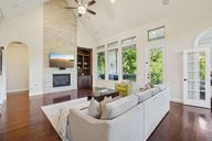 Custom built-in bookcaseRepaved patioViews of the backyardSoaring floor-to-ceiling fireplacePeaceful wooded viewsSitting areaMassive bathroom