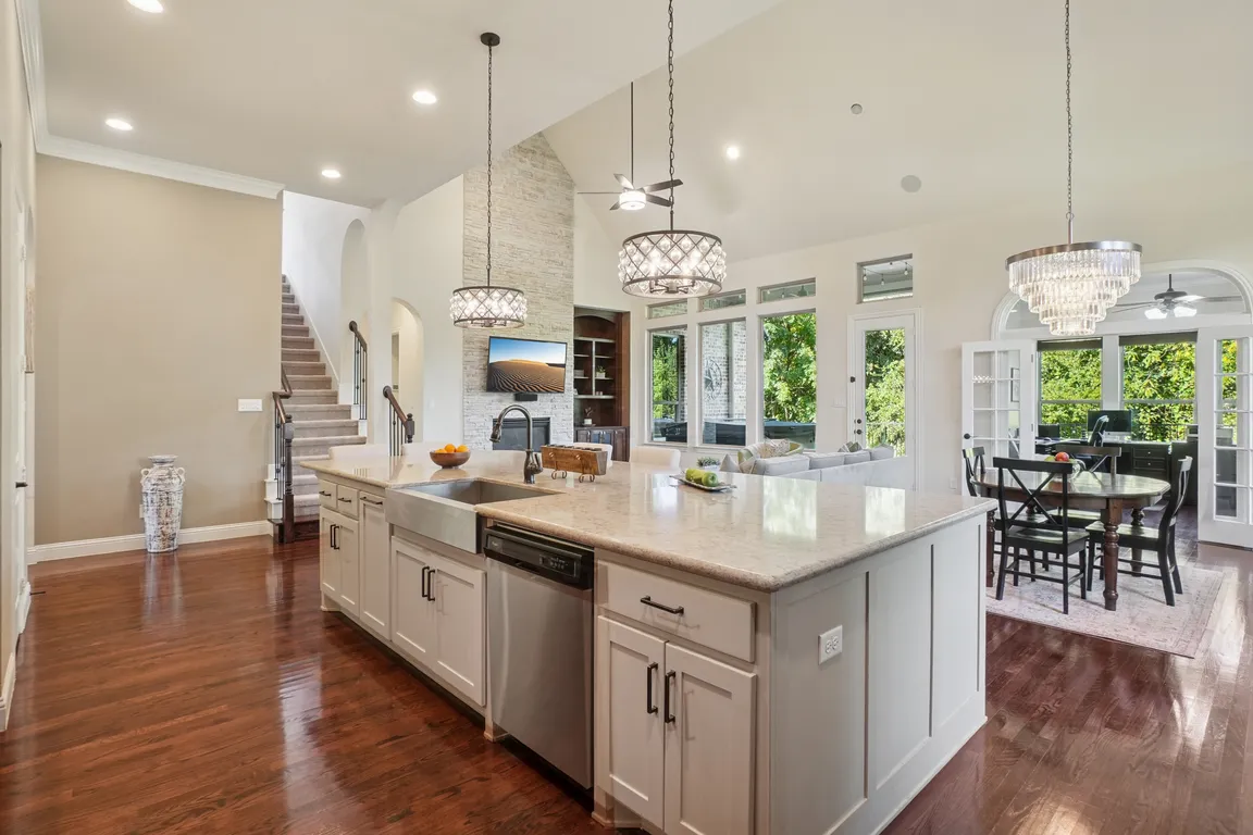 - Decorative/Designer Lighting Fixtures, Double Vanity, Eat-in Kitchen, Kitchen Island, Open Floorplan, Pantry, Cable TV, Vaulted Ceiling(s), Walk-In Closet(s), Wired for Sound
