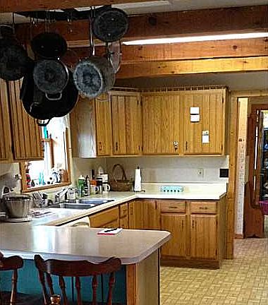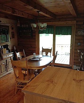 True ranch log home. Vaulted ceiling, natural wood throughout. Greatroom with wood stove and skylights. Master bed full bath, walk-in closet. 20x5 covered front porch. 26x12 rear deck. Attached oversized garage. Abundant wildlife in this out-in-nature setting. Large stocked pond.