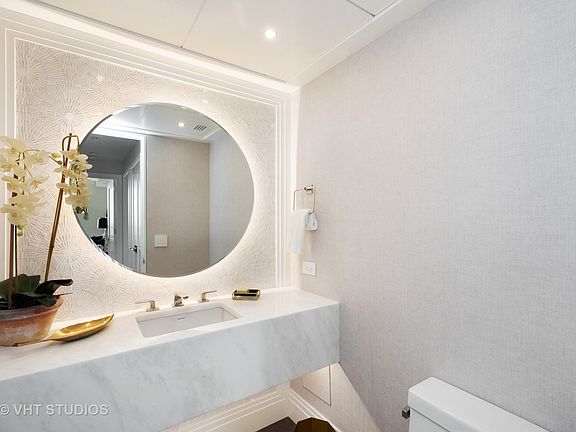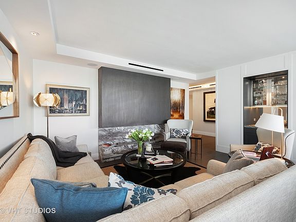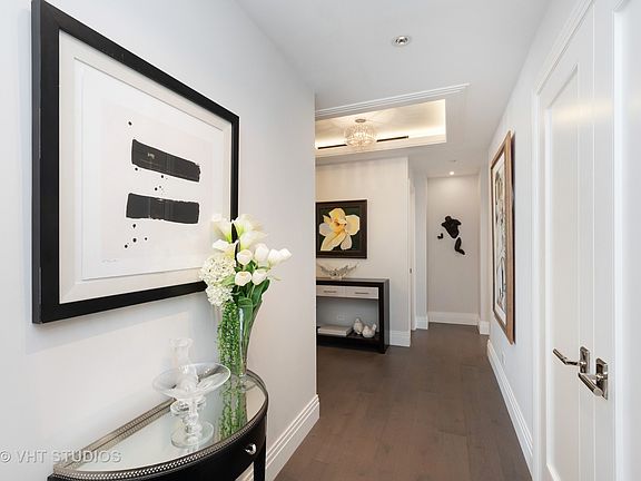 Completely gutted and renovated by Centaur Interiors in 2017, this spectacular home offers breathtaking lake and city views, along with spectacular sunrises and sunsets from the home's East and West exposures. No expense was spared! From the moment you enter, you are immediately struck by the attention given to details. An open floor plan with a transitional aesthetic and custom high end modern finishes throughout. An incredible gourmet kitchen with white shaker style cabinetry, quartzite counters, high-end appliances and a built-in banquet overlooking the lake. Enjoy entertaining from the large living and dining areas which features a artistically designed fireplace and dry bar area and a large east facing terrace. Three ensuite bedrooms, including a generous primary bedroom with a spa quality bathroom. A 2nd terrace spans the entire west side of the home. Additional features include a gorgeous powder room, gracious entry way, hardwood flooring, custom built-ins, designer lighting, butler's pantry with washer/dryer, new windows, tremendous storage, new floor to ceiling windows, new state of the art mechanicals, and so much more. With 5 star service, The Carlyle, is a full amenity building featuring 24 hour door service, on-site management, an indoor pool, fitness room, ballroom with catering kitchen, sundeck, and valet parking. 1 valet parking space included in the monthly assessment. Additional parking available for additional fees. Ideally located on the lakefront and walking distance to amazing dining, shopping, parks, and theater. This is an exceptional property and not to be missed.