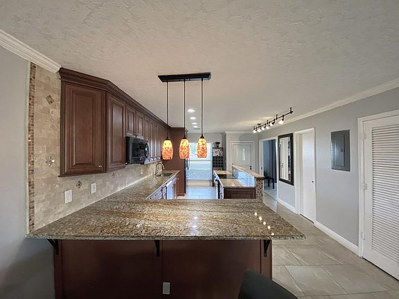 Welcome to the Pine of Delray where you'll discover this exceptional villa renovated to enhance modern living. This delightful residence features contemporary wall colors, textured ceilings, and elegant crown molding. The expansive 19.6-foot gourmet kitchen is a standout, outfitted with premium wood cabinetry, smooth Blum soft-close hinges, and an impressive 28 feet of granite countertops complemented by a sleek 6"x 3" granite tile backsplash. Enjoy the convenience of a stainless steel kitchen sink and high-quality stainless steel appliances.