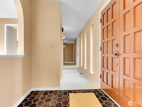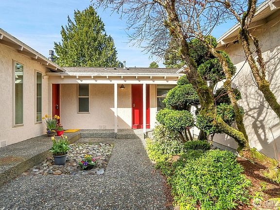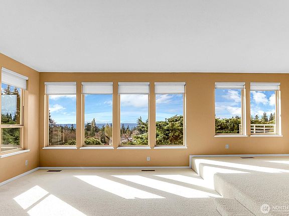 Courtyard entry welcomes you to the joy of one level living! Enter to sunken living room with views to Puget Sound & the Olympic Mountains.Updated kitchen has island center & familyroom with FP & opens to expansive newer spacious custom deck that flanks across the westside & also can be accessed from the Primary bedroom which has a 3/4 bath & walk-in closet. 2 additional bedrooms + large Bonus Room with a closet that could be a 4th bedroom. Main bathroom has a newer walk-in spa-tub ready for relaxation! Seperate utility room. Bonus room has sliding doors & opens to lovely level backyard with mature landscaping. This is a one-owner much loved & enjoyed home by the current owner. Syre elementary is just 2 blocks away. Location near shopping!