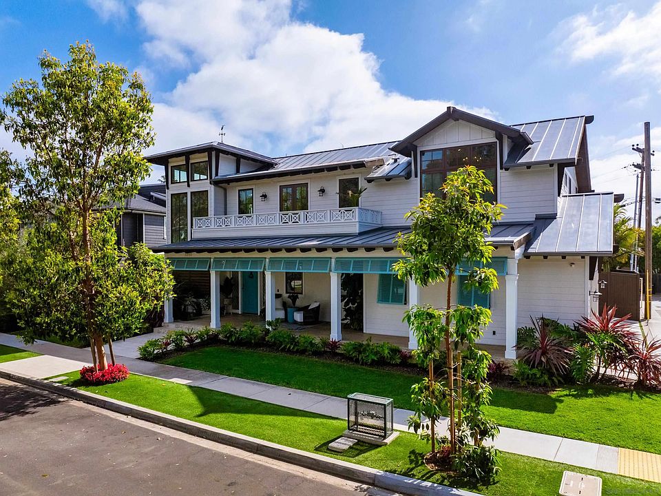 A seashell-toss from Coronado Beach, this newly built coastal estate sits on an exceptional 11,702 sq ft lot, nearly twice the typical parcel this close to the sand. Resort-style grounds showcase a pebble-finish pool with raised spa, Baja shelf, outdoor shower and built in bbq, all bordered by lush landscaping and a covered fireside patio for year-round entertaining . Inside, 3,607 sq ft of light-filled living space unfolds. A magazine-worthy chef’s kitchen centers the main level with a 65" French-blue La Cornue Château 165 range, dual 36" Sub-Zero refrigerators and a full Miele suite, wrapped in custom cabinetry and stone countertops while a fully outfitted butler’s pantry and dumbwaiter keep service effortless. Rift-sawn white-oak floors glide through living and dining areas to 12' sliding doors that blur the line to the backyard oasis. Upstairs, three ensuite bedrooms include a sun-filled primary retreat with dual dressing rooms and a spa-caliber marble bath. Capping the home, a 360° viewing sun deck captures sweeping ocean, downtown-skyline and sunset vistas. A detached 487 sq ft casita with kitchenette and full bath provides ideal guest, office or multigenerational space, bringing total conditioned living area to approximately 4,094 sq ft. Designed by award-winning Architect, Christian Rice, the residence layers board-and-batten siding, standing-seam metal accents and copper details for a timeless Caribbean-coastal aesthetic.