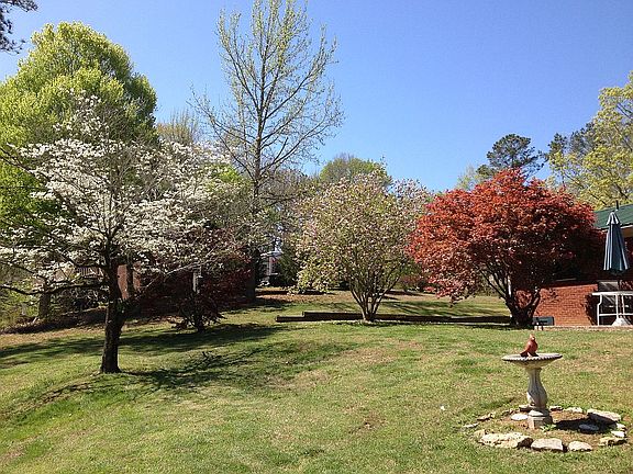 Lake house in private cove on Pine Lake. Rustic. Huge utility room with washer/dryer HOOKUPS along with sink and cabinets. Kitchen and family room combo with windows looking out at lake. Fireplace. Kitchen features microwave, fridge, dishwasher and plenty of cabinets. Flooring is duroceramic tile in family room. Sit on your sofa and stare at lake. Bathroom in hall with tub/shower combo. Master bedroom with double closet and bathroom with shower. 2nd bedroom has closet. Living/dining room combo with hardwood floors.Closet. Windows looking out at other side of lake. This room could be a third bedroom. Large front porch for enjoying a glass of tea. Backside of house provides privacy with deck and patio. Large yard with swing at water. Dock for fishing or keeping your boat. There is a cabin behind house that rents separate from house. Parking in driveway
