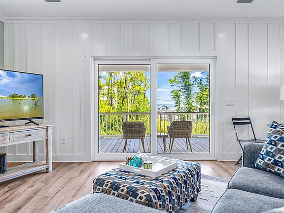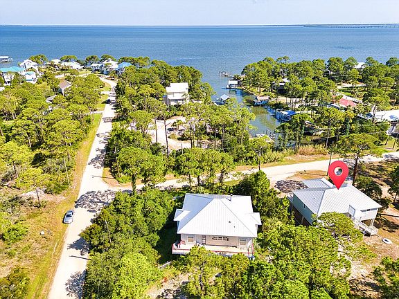 Almost new construction, bayview home on St. George Island! Looking for the benefits of new construction, everything to code, impact door and windows, but don't want to wait for building? Here is your chance to for an immaculate, delightful modern home, 3BR/3BA with great bay views down the canal, right across the street! Built in 2018 with thoughtful custom features, you'll love the bright, spacious kitchen with quartz countertops, custom cabinets and stainless appliances. Great room opens to a bay front porch – covered and sun decks - with views of the Apalachicola Bay. Primary bedroom has bay views, board and batten accent wall, with ensuite bath featuring double vanities, walk in shower and a spacious walk-in closet. Guest bayside bedroom has an en suite bath with tub. Additional guest bedroom connects to a full bath that also opens to the hall. Large laundry room offers extra space for pantry and storage, this home has enough room to be a wonderful full time residence or, add a pool in the private back yard and it can be a productive investment property!