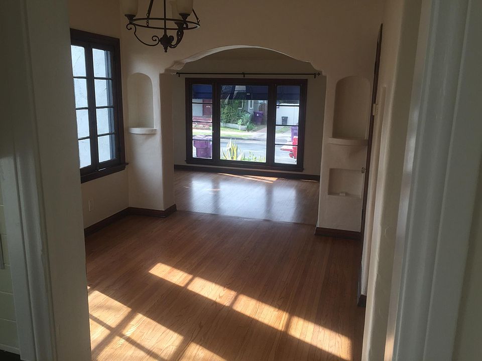 Recently renovated 1,055 square foot 2 bedroom 1 bath bottom floor unit in a historical Spanish Colonial fourplex built in the 1920s. Building is located one block from Recreation Park. Unit has oak hardwood floors in living room, dining room, hallways and bedrooms. Unit has charming character with a formal dining room with built-in Brazilian mahogany cabinets and chandelier, 10 foot coved ceilings, a large brick patio (300 square feet) off kitchen and dining room, and a faux fireplace in living room. Kitchen has a Caesar stone countertop, under mount stainless steel sink, dishwasher, gas range and stacked Duet Whirlpool washer and dryer Unit has a private garage for storage only that is 150-200 square feet. Building has new copper piping providing excellent water pressure and all new electrical. Close to Belmont Heights, Belmont Shore, Naples, Alamitos Heights, Park Estates, Bixby Village and Cal State Long Beach. Available for move-in February 1st. Today, Sunday, January 18th will be my last time showing the unit. It is by 15 minute appointments. The day was booked, but I had several cancellations this morning. If interested, call through Zillow and I will see if I can schedule you in if you are highly interested. Owner pays for water. Renter responsible for gas and electric. Last month's rent and deposit due at signing. No smoking.