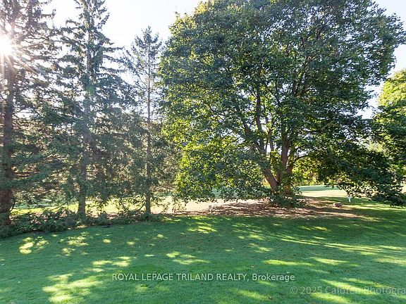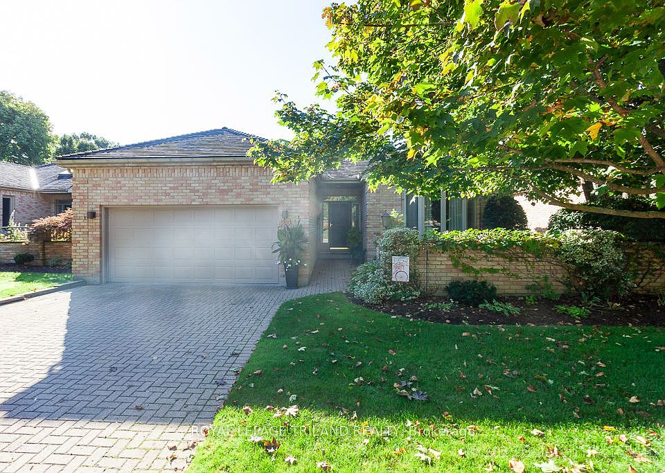 Experience refined living in one of Londons most prestigious enclaves with this superb luxury detached condo in Hazel Lanes. This meticulously maintained home offers over 2,200 square feet of sun-filled main floor space, backing onto the scenic Thames Valley Golf Course for a tranquil and private setting perfect for both relaxation and sophisticated entertaining.Inside, discover a generous living room with a cozy gas fireplace and patio walkout to an expansive wrap-around deck equipped with retractable awnings, offering sweeping treed and golf course views. The main level features an elegant formal dining room, a spacious eat-in kitchen with abundant cabinetry and counter space, plus a bright den with direct access to a private interior courtyard.Retire to the oversized primary suite, complete with a large walk-in closet and a modern en-suite featuring a walk-in tub/shower. A second spacious bedroom, full bath, and convenient laundry area round out the main floor. The impressive 9-foot ceilings are enhanced by elegant crown moulding and a striking great room, adding to the overall sense of space and grandeur.The lower level offers a massive family room with its own fireplace, a third bathroom, and generous storage solutions ideal for extended family gatherings. A double garage with inside entry provides added convenience.Residents of Hazel Lanes enjoy access to a large heated saltwater pool, manicured green spaces, and walking and bike trails just steps away along the Thames River and Springbank Park, while Hyde Parks shopping and downtown amenities remain within easy reach. Recent updates include a newer cedar shake roof, newer deck, and a high-efficiency furnace and central air installed in 2019.This exclusive, sought-after community combines elegant design with luxury amenities and an unbeatable location. Schedule your private viewing and experience the serenity and sophistication of Hazel Lanes living.