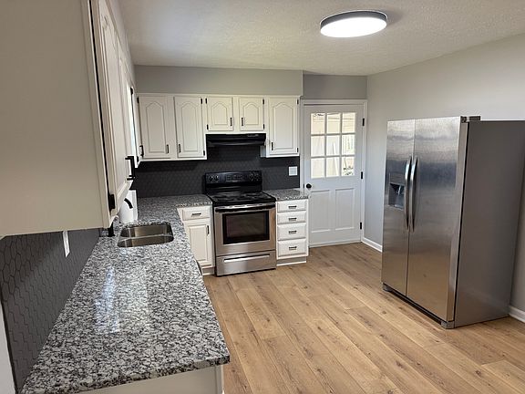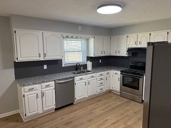Welcome to country living 1 mile from the interstate. Very nice 3 bedroom brick with 1 1/2 bath and a 2 car garage. Beautiful LVP flooring has been installed throughout. The home has been remodeled on the inside from top to bottom. Large eat in kitchen has new stainless steel appliances. Lots of extra space with an unfinished walkout basement for storage. This home sits on just over an acre so lots of outdoor space. Great location, this home is only minutes from shopping, dining and entertainment. Washer and dryer included. Strict no pet policy. Lawn care is the responsibility of the owner but can be taken care of for an additional fee. Utilities will be placed in the renters name. AT&T fiber is available in this area.