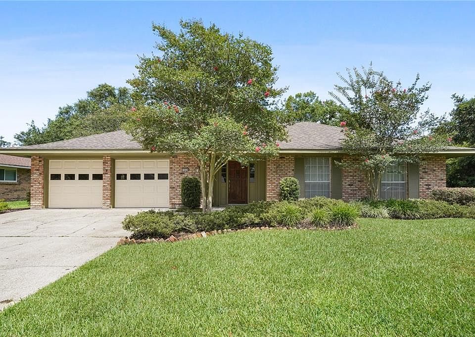 Qualifies for 100% financing! Nice four bedroom brick home on large 80 x 125 lot. Kitchen & breakfast area opens to den. Built in shelves & large sliding glass door in den. Totally open large dining room/formal living room; could be huge media or game room. Indoor laundry with cabinets, insulated garage door, Lennox high efficiency A/C, 3 year young water heater, 2 attic accesses, patio & shed. BONNE ECOLE school district. Great flood zone X; never flooded. Convenient commute to N.O. or MS.