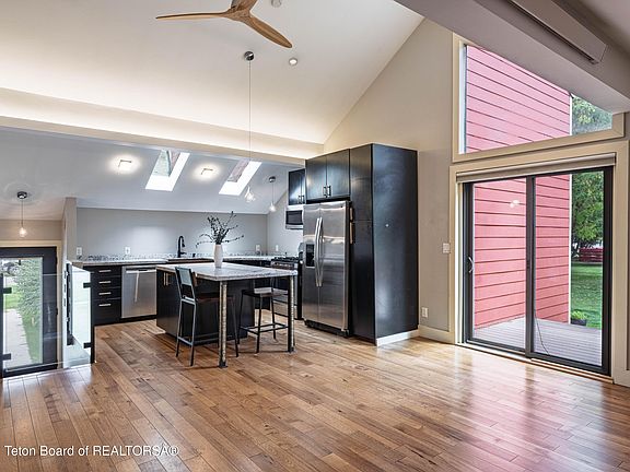 Updated and move-in ready, this 2-bed, 1-bath condo sits directly on coveted Powderhorn Park, offering trails, dining, and Jackson's town-core conveniences at your door. Renovated in 2019, it boasts vaulted ceilings, abundant natural light, and a modern kitchen and bath with an open layout for entertaining or quiet evenings. Step onto the private deck for morning coffee or sunsets over the park.
