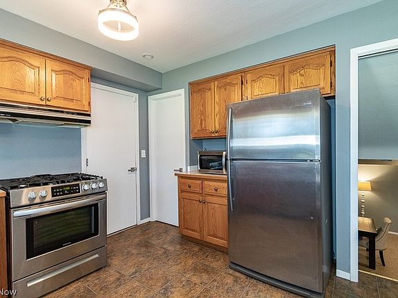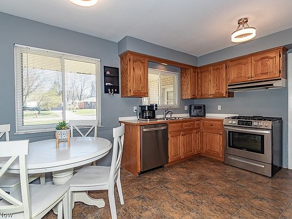 Welcome to easy living in a desirable location within Highland Heights! This charming split-level, nestled on a picturesque street, offers an irresistible blend of comfort and elegance. Step inside to discover a freshly rejuvenated interior, boasting all-new neutral paint throughout, creating a bright and inviting atmosphere. The heart of the home, the large eat-in kitchen, is a chef's delight with plenty of cabinets and all appliances including a new range, ensuring both style and functionality. Adorned with gorgeous hardwood floors that flow seamlessly throughout, each step exudes luxury and warmth. Retreat to the master suite, where indulgence awaits with a full bath featuring newer travertine flooring. The generously sized bedrooms offer ample closet space, providing rest and relaxation. Entertainment awaits in the lower level rec room, where a cozy fireplace and sliding glass doors leading to a covered patio beckon you to unwind and entertain in style. Outside, the sprawling backyard, now boasting new landscaping, is fenced-in and perfect for children and pets to roam freely. But the upgrades don't stop there! This home also features brand-new light fixtures throughout, including in the bathrooms, adding a touch of modern sophistication. Plus, enjoy the convenience of new leaf-guard gutters and a new washer and dryer that stay with the house. Meticulously maintained and thoughtfully upgraded, this home is truly a rare find. Don't miss your chance to make it yours and start creating unforgettable memories in this remarkable sanctuary. Welcome home!
