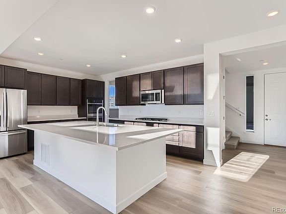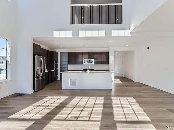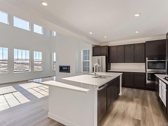 Views, Views, Views! Backs to open space with walkout basement **Move in ready***Special Financing available including below market rates** Gorgeous Aspen Floor plan built by Lennar located in the fantastic new community Sunset Village! The main level boasts lots of natural light with it's 2-story great room! The main level has EVP flooring, main level bedroom, full guest bathroom, a beautiful Chef's kitchen with quartz countertops, double ovens, gas cooktop, eat in kitchen island and breakfast nook leading to the covered rear deck. Upstairs has your primary suite with en-suite spa style bathroom, a large loft area, Jack N Jill bathroom for bedrooms' 3 and 4 and bedroom # 2 with it's own full bathroom. The walkout basement is unfinished waiting for your personalization. Additional features include a 3-car garage and the home is equipped with solar. See everything Erie has to offer with its small town feel, majestic mountain views, 63,000sf community center and 20,000sf community Library! Close to shopping/dining, trails and parks!