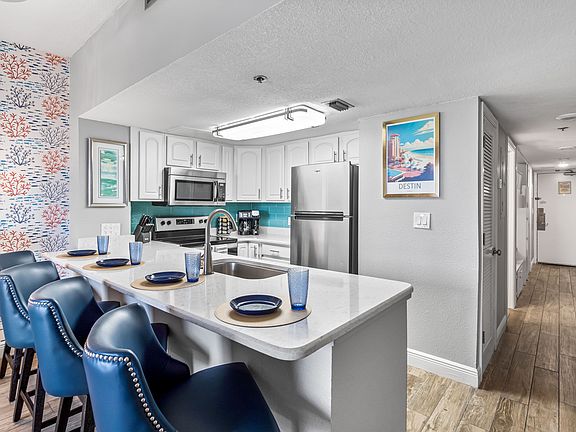 This newly updated one-bedroom ground floor unit offers unparalleled convenience and luxury. Just a few steps away, you'll find the boardwalk leading to the pristine sugar sands of the Gulf of Mexico.