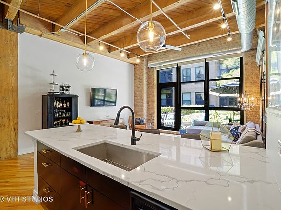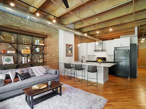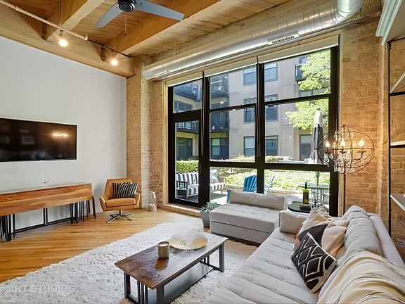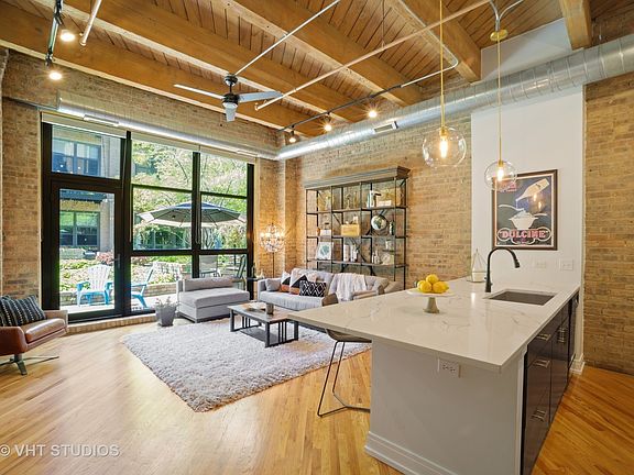 Experience the best of West Loop living in this beautifully updated brick-and-timber loft featuring a rare, oversized private terrace! Situated in the heart of the nation's top dining scene, this open-concept residence blends modern upgrades with authentic loft character-soaring 12' ceilings, exposed brick and timber beams, & expansive windows that flood the space with natural light. Originally part of a landmark loft conversion completed in 2006, this home offers an inviting open kitchen & living area with upgraded hardwood floors, granite & quartz countertops, & stylish contemporary finishes. The spacious bedroom includes a generous walk-in closet with custom built-ins, while the spa-like bath features a designer full shower & thoughtfully selected materials throughout. In-unit laundry adds extra convenience. The full-amenity building provides 24-hour door staff, a fitness & yoga studio, media & business centers, entertainment/party rooms, & heated garage parking. Just minutes from the Loop, parks, public transit, & the West Loop's renowned dining, shopping, and nightlife, this home offers the ideal blend of industrial-chic style and modern urban convenience. Terrace units are rarely available-don't miss this one!