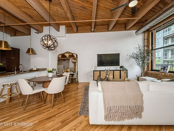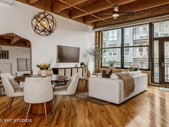 Nicely updated true 1 bedroom with balcony in West Loop's No. Ten Lofts! This 870 sq ft. stylish & historical brick & timber loft is an exterior unit with views over pleasant tree-lined Aberdeen, and gets fabulous natural light from west facing wall-to-wall windows and glass door leading out to a private 17 foot balcony. The open concept living space with combined living/dining room flows seamlessly into the kitchen with flat modern cabinetry, freshly refinished HW flooring ('23), neutral granite countertops, breakfast bar, and all new KitchenAid stainless steel appliances ('23/'24) . Bedroom is generous, fully enclosed and features new HW flooring ('23), wall-to-wall windows and a professionally organized walk-in closet. Features include In-unit laundry w/new washer dryer ('23), new lighting & fans throughout (closet, bedroom, kitchen, living room) & additional storage cage. 1 attached heated, extra wide deeded garage parking spot is available for purchase for $25K. No. Ten Lofts is a full amenity "Lifestyle Building" with 24 hour doorstaff, on-site management and maintenance, common courtyard, dog run, exercise room with the latest equipment, yoga room, business center, clubhouse room with billiards, walk-out terrace and grills, and entertainment suite movie theater room with stadium seats & reclining sofa chairs. Experience city living at its best with all the conveniences at your doorstep! Just steps to all the top rated restaurants on bustling Randolph Street, Mary Bartelme Park and Skinner Park, CTA, Metra, the Loop, Target, Marianos, Whole Foods, & so much more!