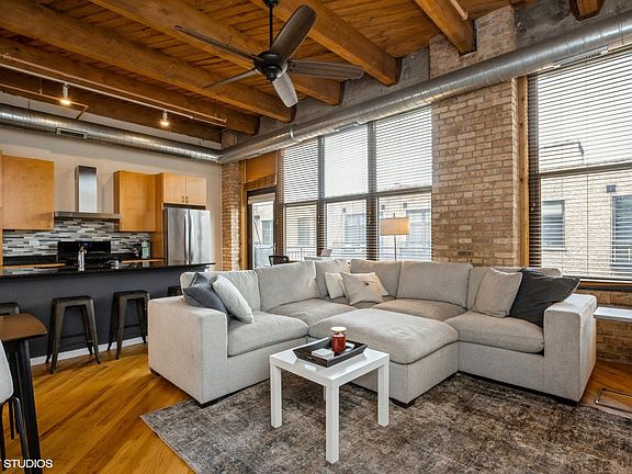 Live in a quiet building close to everything. Enjoy this expansive top floor loft in one of the West Loop's most sought-after full-amenity buildings. Soaring 11-foot timber ceilings, hardwood floors, and oversized windows flood the open-concept great room with natural light. Step out onto your private balcony overlooking the building's courtyard-a peaceful retreat in the heart of the city. The modern kitchen features granite countertops and stainless steel appliances, perfect for entertaining or everyday living. In unit Washer and Dryer. Enjoy luxury amenities including a beautifully landscaped courtyard with grilling area, a stylish party room with pool table, 24-hour door staff, a well-equipped fitness center with Peloton, and on-site management. Unbeatable location just steps from vibrant Randolph Street restaurant row, Target, Whole Foods, and everything the West Loop has to offer. Premium heated garage parking INCLUDED. Also a motorcycle spot available for purchase too. Don't miss this rare opportunity to live in an iconic timber loft building in the heart of it all!