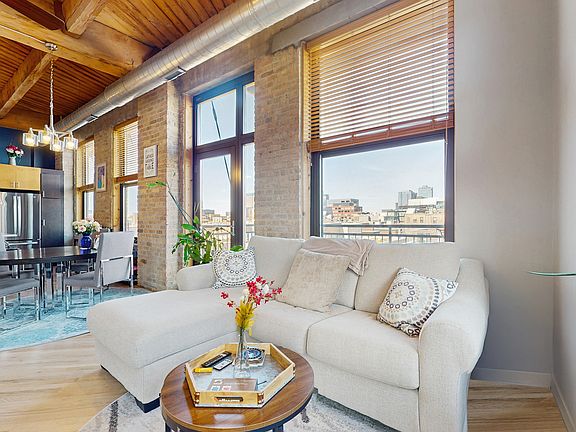 Rarely available corner timber loft with northeast city views in coveted West Loop building, No. 10 Lofts! Spacious, fully enclosed 2-bedroom, 2 bathroom condo features over 1,200 square feet of living space. This home has been exceptionally well maintained with multiple upgrades performed over the past few years including the addition of hardwood floors in the bedrooms and refinished flooring throughout. The open kitchen is perfect for entertaining and has plentiful cabinet space, stainless steel appliances including a newer French door GE refrigerator (2022) and Whirlpool dishwasher (2021), and new white quartz countertops (2024) on a large breakfast bar. A wall of windows anchor the generously sized living area, capable of accommodating separate living and dining spaces. A north-facing balcony, accessible through the living room, provides views of the West Loop and is perfect for grilling and socializing. The large primary bedroom features a spacious, fully organized walk-in closet and en-suite bathroom with a large double vanity with a white quartz countertop and glass shower. The newly painted second bedroom has an additional organized walk-in closet and hallway accessible second bathroom with a soaking tub and vanity with quartz countertop. Full sized laundry is conveniently located in-unit and was upgraded in 2022 with new LG units. This unit has an abundance of storage located both in the unit with a built-out hallway closet as well as a large storage cage in the building. One tandem parking space in the building's attached heated garage available for $30,000. No. 10 Lofts is a full amenity building including a large fitness center, business center, party room overlooking interior courtyard garden, theater room, 24-hour doorperson, and on-site maintenance. Prime West Loop location in highly coveted Skinner school district and pet friendly building located one block from Bartleme dog park. Easy access to public transportation including CTA Blue Line, multiple bus routes, and 90/94 and 290 expressways. Walk to shopping including Target, Marianos, and Whole Foods as well as the West Loop's restaurants and nightlife!