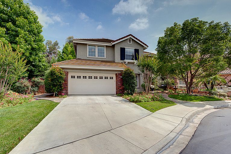 Situated in the private and pristine West Hills community in La Habra, this four bedroom, three bathroom luxurious Crest home is ideally located at the end of a cul-de-sac. Upon entering through the front door, tile floors flow throughout the spacious entry level that welcomes you to a light and airy open floor plan. The living room features 20 plus foot cathedral ceilings, several large windows, and connects to the formal dining area which creates a seamless transition when entertaining. Glass doors open up from the dining room to the custom paver patio – perfect for California indoor/outdoor living. The first level also has a carpeted office, a full guest bathroom, a spacious laundry room with cabinets and utility sink, and an attached two car garage. The family room features a cozy brick wood burning fireplace, a number of dual pane windows that showcase the lush greenery outdoors and a glass slider door that opens up to an impeccable backyard that was designed with the entertainer and gardener in mind. The newly remodeled gourmet kitchen features a Culinarian Series 6-burner range with stainless steel hood, a recessed GE profile refrigerator, a Dacor warming drawer and built-in microwave/convection oven, Bosch dishwasher, and trash compactor. The quartz countertops, custom-built island with soft-close drawers and cabinets, and large walk-in pantry, complete this chef’s dream kitchen. Up the carpeted stairs are four bedrooms, including the master suite with cathedral ceilings and lovely views through the numerous dual pane windows. The master bathroom has a large stand-up shower, a bathtub made for bubble baths and soaking, dual sinks, and an oversized walk-in closet. A separate full bathroom with dual sinks and a separate toilet and shower/tub is accessible for the other three bedrooms. The three additional bedrooms are generous in size with ceiling fans, plentiful closet space and are light and bright due to the abundance of windows. The backyard is an entertainer’s dream and features an abundance of foliage and a custom paver patio. Don’t miss out on a chance to call this wonderful private home your very own! • Home: 3,168 Square Feet (Measured) • Lot: 6,769 Square Feet (Per Assessor) • Garage: 465 Square Feet (Measured) • Built: 1994 • Four Bedrooms • Three Bathrooms • Office Space • Formal Dining Room • Living & Family Room • Wood Burning Fireplace • Spacious Gourmet Kitchen • Stainless Steel Appliances • Dual Zone HVAC • Cathedral Ceilings • Reading Nook/Seating Area • Attached Two Car Garage • Entertainer’s Backyard • Low HOA Dues: $135/month