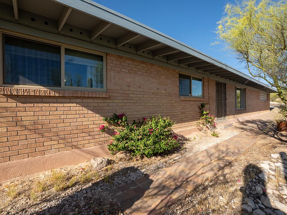 * Outstanding city and mountain views from this charming updated 3 BR 2 BA brick home sitting on a high lot which offers country living near the heart of Tucson! Enjoy the entertaining rear patio as you watch the AZ sunsets. The two car garage has polished floors. Easy care. The rainwater gathering system saves water. There is a 300 sq ft workshop detached from the home, or can be used for extra storage.Plenty of room for RV, boat or horse corrals.