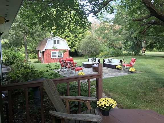 This inviting 2075 sq. ft. 3 BR 2 BA ranch sited on a 1.45 acre lot surrounded by state owned land and abutting the Quinapoxet River (stocked with trout each spring) is a rare find. The antique post and beam family room with skylights, brick flooring and wall, and lots of windows and built-ins, has a Vermont Castings wood stove for staying warm on those cold winter nights. The remodeled kitchen has plenty of cabinetry, and a generous amount of corian countertops, The large dining and living rooms offer an open floor plan with lots of windows and a cozy fireplace surrounded by local cherry wood and built-ins. The large master bedroom has a private bath with shower, and the remaining bedrooms are good sized. The unfinished walk out basement has a spacious work area with large windows, a wood stove, and the potential for a third garage with overhead door. The large yard has fruit trees, space for volley ball, a large garden or even a pool! There is also a garden shed.