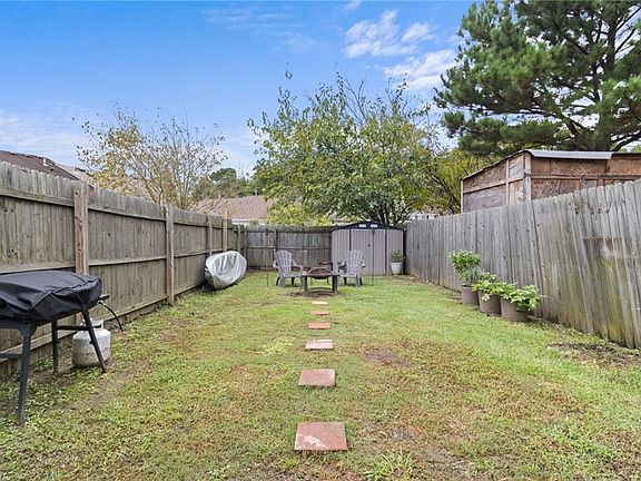 Come see this nicely updated townhouse with a modern electric fireplace. The home has an open concept and all one level living. The bathroom opens up to the primary bedroom & the hallway. The primary bedroom has a walk-in closet. The second bedroom is being used as a home office. The back yard is spacious with a shed. The hall closet is set up to be a pantry or closet. The large storage cabinet in foyer DOES NOT convey. The house has a cute front porch stoop & lots of parking for 4 vehicles.