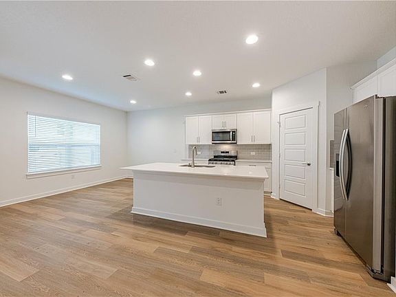 Stainless steel appliancesQuartz countertopsOpen floor kitchen
