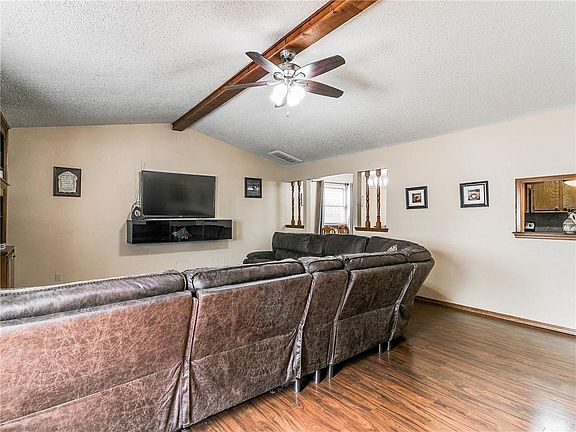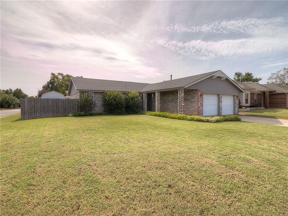 This spacious 3 bedroom, 2 bathroom Yukon home sits on a large corner lot and features a ton of updates. The living room includes vaulted ceilings, a large fireplace, bookshelves, new laminate flooring (2017), and a new IKEA entertainment center (2018). The kitchen features new wood-look tile (2017), stainless steel appliances, lots of storage, a roomy dining space, and a pantry. Master bedroom is spacious and master bathroom has terrific updates, including new countertops, fixtures, and shower tile. Secondary bathroom also features new counters and fixtures. Home includes an inside utility and a large 2-car garage. Exterior features include a new covered patio (2017) with a hot tub that will remain with an acceptable offer, great landscaping, a wood fence, and a shed. Updates include a new roof (2013), new furnace with a 10-year warranty (2015), and new windows (2015 and 2020). Home is less than a mile from the turnpike, and just a few miles from Lake Overholser and the OKC Outlets.