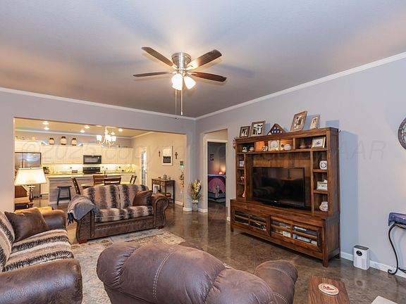 Open floor planCeiling fansGranite countertopsTile backsplashNewer stained privacy fenceLush grassLarge bedroom closets