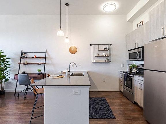 - Exterior features: , Barbecue, Building-wide Wireless, EV Charging Stations, Oversized windows for natural light, Package Receiving, Pet Park, Pet Washing Station, Quartz countertops, Stainless steel appliances, TV Lounge, Two unique color palettes, USB port outlets, Weekly Yoga Sessions, Wood-like flooring