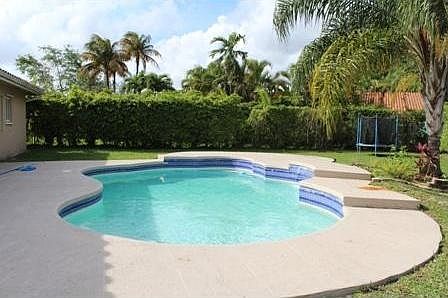 This huge four-bedroom pool house is found in a central Kendall area location. This area is known for its safety, great schools, major entertainment areas such Town and Country and easy access to the Turnpike. This one-story property has more than 3100 square feet, which can be seen in extensive living areas and great bedrooms with generous closet space. This house has wood floors throughout, Bahama shutters, French doors and ceiling fans in each room. The large backyard is the perfect place to entertain guests and enjoy the swimming pool and mini basketball court. Call (786) 991-7580 to schedule an appointment now!