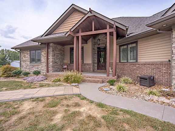 Welcome to this beautiful Craftsman Ranch-style home nestled on a 2.6-acre lot with 12.5 acre stocked lake. If you're seeking the perfect piece of paradise, look no further! Inside, you'll find an open floor plan that includes a welcoming foyer, a great room with a tray ceiling, and a formal dining room. The family room has a fireplace, built-in bookcases, and stamped concrete flooring, with big windows offering lake views. There's also a den/study (which could be a fourth bedroom), a half bath with a stylish glass bowl sink, and a functional laundry/mud room with utility sink and cabinets. The owner's suite features wood flooring, a spacious walk-in closet with Amish-built customizations, and a custom tile walk-in shower. Two more secondary bedrooms share a full bath. Throughout the home, you'll find plantation shutters, custom Amish cabinets, and 18" tile flooring in the main living areas. Outside, there is mature landscaping with beautiful trees, a circular driveway, and a 2.5-car attached garage. Now, the best part: a spacious 30x40 detached garage, perfect for entertaining! It comes with a bar, kegerator, its own HVAC system, 3 garage doors with one garage door with a retractable screen for enjoying those breathtaking lake views. There are also several spots around the home where you can take in the serene 12.5-acre stocked lake. Plus, there's an 18x36 inground saltwater pool with heating and cooling, complete with an automatic cover for year-round enjoyment. Per Owner: new hot water heater for the garage installed in 2023. Pool Raybac heating and cooling system for the pool added in 2019,septic pump 2023. This property offers full usage rights to the lake, making it ideal for those peaceful moments. This home is ready for you to make it your own – don't miss this fantastic opportunity.