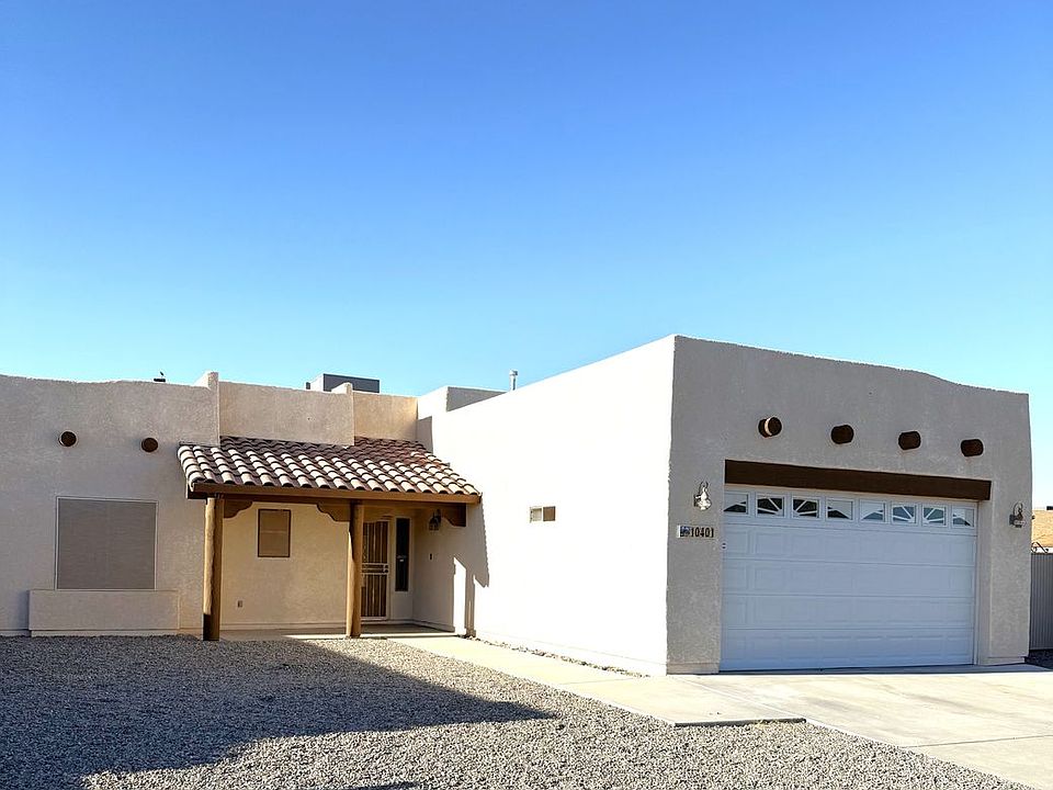 3 bedroom, 1.75 bath home with oversize 2 car garage for rent. Extended ceramic floor tiling, 2 bedrooms have carpeting, kitchen with newly installed counter tops, gas range, microwave and dishwasher. Reverse osmosis and water softener included. 1 bedroom has a Murphy bed. French doors lead to full length covered patio, storage shed and easy care landscaping. Double gates to rear yard complete with RV hookup.