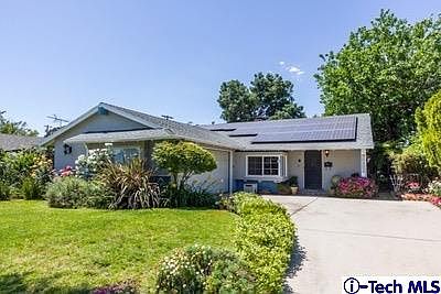 Lovely traditional Granada Hills home. Stunning vaulted beam ceiling in the living room with a magnificent fireplace and french doors that lead to a lush rear yard. Dining area includes a beautiful stained glass window with views of an incredible oak tree outdoors. The wonderful newly remodeled kitchen with granite countertops is perfect for entertaining. The third bedroom has been converted to a den/office with great built-in bookshelves. It can easily be returned to a bedroom by adding a wardrobe closet. This is a one of a kind home that you must see, in order to appreciate its many amenities!