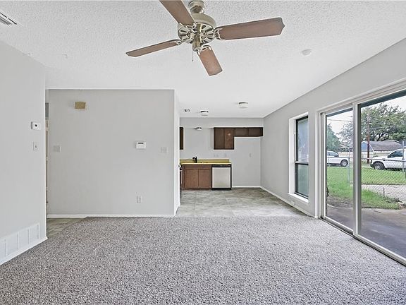 This Dallas one-story offers three bedroom and two full bathrooms. Upgraded features include fresh interior paint, new carpet and laminate flooring in select rooms, and a new roof. Home comes with a 30-day buyback guarantee. Terms and conditions apply.