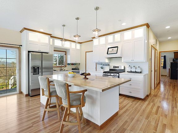 Step inside to discover a gorgeous open-style kitchen perfect for culinary creations, with a butcher block island, accent lighting, and even a butler's pantry with wash sink! Enjoy breathtaking views while sipping morning coffee from your dining table or evening conversation from a perfectly cozy living room.