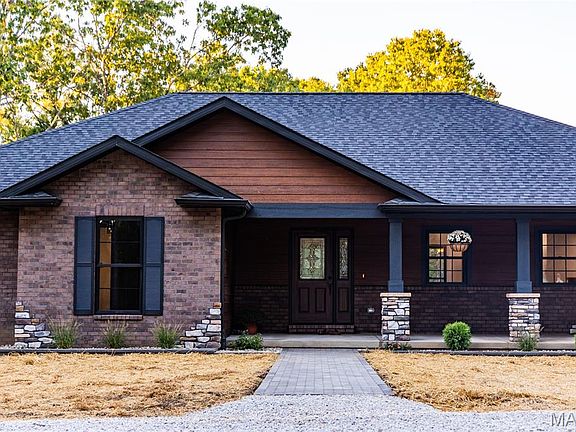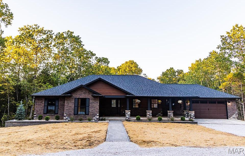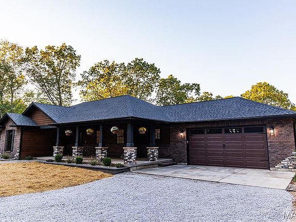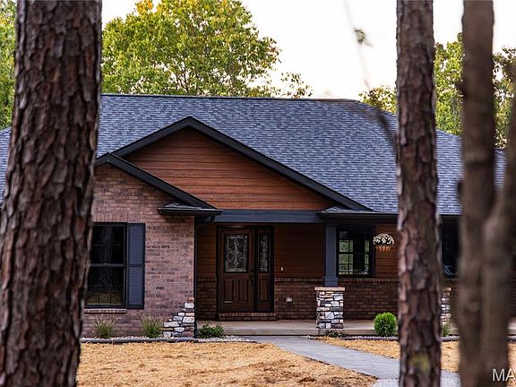 Welcome home to this stunning custom-built ranch, perfectly nestled among majestic pine and oak trees on 6.2 peaceful acres in a private subdivision. Thoughtfully designed and quality built from top to bottom, this home blends beautifully into its natural surroundings. The exterior showcases a welcoming mix of queen-sized brick, stone piers with corner waterfalls, and premium LP wood siding with a 30-year Diamond Kote finish. Beautiful landscaping and a paver walkway lead to the spacious covered front porch that sets the tone for what’s inside. Step into an open, light-filled interior featuring gorgous wood floors, a striking stone gas fireplace, and vaulted ceilings in the great room and primary bedroom. The kitchen impresses with Category E granite countertops, custom KraftMaid cabinets featuring "lazy Susans", matching Fridgedaire dark stainless appliances and quality finishes throughout. The large Fiberon composite deck is a perfect place to enjoy nature while the sipping your favorite beverage. Convenient main-floor laundry adds everyday ease. Both bathrooms feature LED mirrors and the primary has dual vanities & accent lighting for a spa-like touch. Built for comfort and accessibility, this home includes 36" doors throughout. The walk-out lower level offers endless possibilities with a 9’ pour, 2 egress windows and a rough-in for a full bath ready for additional bedrooms or whatever your lifestyle requires. Other quality features include blown-in blanket insulation, a high-efficiency heat pump HVAC system, and Landmark Pro architectural shingles and much more. The 24' x 24' insulated garage easily accommodates most trucks and SUVs. As owners of this gorgeous home you have access to a beautiful 86-acre lake—perfect for fishing, kayaking, or simply relaxing by the water. This exceptional property is a rare find that combines craftsmanship, comfort, and the beauty of country living. Truly a must-see!