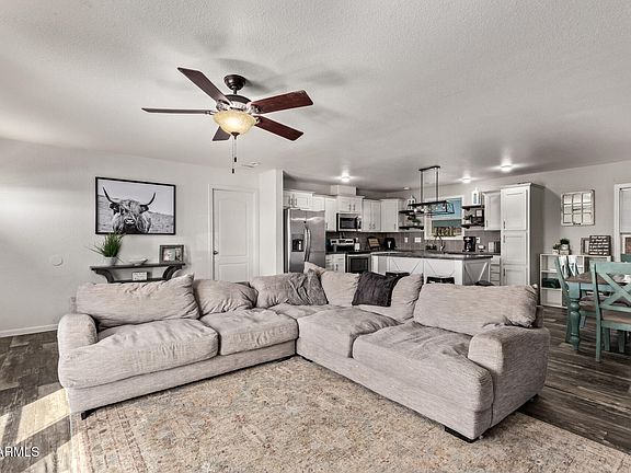 Fantastic opportunity to own a horse property on a HUGE 1.5-acre lot! The charming manufactured home offers 4 beds & 2 baths. The front deck is just the beginning. The inviting interior showcases abundant natural light, neutral palette, chic light fixtures, and wood-look floors w/carpet in bedrooms.The desirable open layout is sure to impress with a media center! The kitchen boasts SS appliances, a tile backsplash, staggered shaker cabinetry, and an island w/breakfast bar. Versatile den for an office or home gym. The main bedroom has an ensuite with dual sinks, separate tub/shower, & a walk-in closet. The expansive backyard has a fenced-in area w/storage shed, the ideal spot for gatherings. Bring your animals, RVs, trucks, cars, & toys; this gem can accommodate them all! What a RARE find!