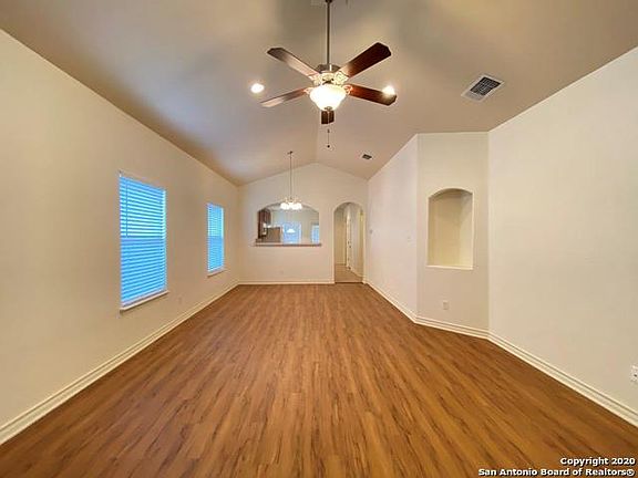 3 Bed 2 Bath 1514 sq ft Single Story Home. Tile in Kitchen and bathrooms. No Carpets anywhere! Living/Dining Room combo w/11 ft ceiling. Kitchen w/Breakfast Bar, Island, Breakfast Nook. Fridge, Flat-top Stove, Microwave, Dishwasher. Master Bedroom w/Ceiling Fan, Walk-in Closet. Master Bath w/Sep Shower/Garden Tub, Dual Sinks. Fenced yard w/Covered Patio. Two Car Garage w/Opener. Close to 1604, UTSA, Six Flags, 151.