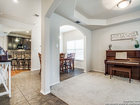 Pristine 3 bedroom, 2.5 bath on corner lot with great curb appeal! Kitchen boasts granite counters, wraparound breakfast bar, & stained cabinets. The Master suite features a large sitting room, separate tub with tile backsplash & walk-in shower, & walk-in closet. Custom touches including trey ceilings, arches & niches throughout. 3 Bedrooms plus Gameroom upstairs. Large backyard with covered patio & firepit, perfect for entertaining. Easy access to 1604 & excellent NISD schools. Paint & new roof May 2017.