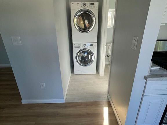 Inside, you'll find all the conveniences you need, including an in-unit washer and dryer, so laundry day is hassle-free. The kitchen is fully equipped with essential appliances, including a refrigerator, stove, and microwave. This setup is ideal for anyone looking to cook and dine in the comfort of their own space.