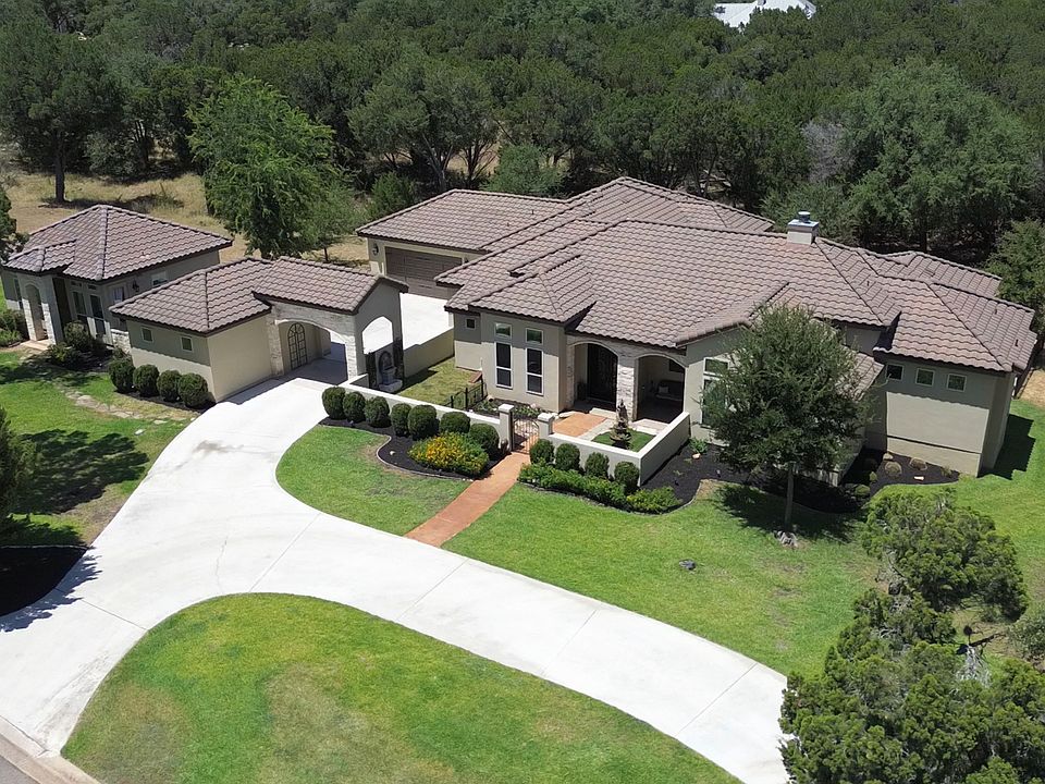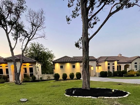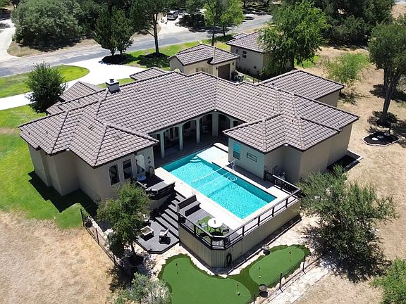 A Mediterranean beauty that offers a truly extraordinary living experience! This gorgeous home with a tiled roof is situated on a sprawling lot of 1.59 acres in the sought after subdivision of Rockwall Ranch. The main home boasts 4 bedrooms, 3 baths, an open study and a game room. There is also a lovely casita that has a full kitchen and bath and functions as the 5th bedroom, in-laws suite or guest home. Coming into the circular drive, you are greeted with meticulous landscaping and a beautiful courtyard that welcomes you home. The grandeur of this charmer is evident from the moment you step inside the exquisite entry with 14 foot ceilings, an abundance of natural light and an immediate view of the lovely pool. The open floor plan, boasting of travertine flooring, seamlessly integrates the main living areas, creating an ideal space for both entertaining and everyday living. The heart of the home is the gourmet kitchen equipped with stainless steel appliances, custom cabinetry and a center island that draws you into a wonderful culinary experience with family and friends. The luxurious owner's suite is a private retreat featuring secluded views, a spa-like en suite bathroom with a soaking-jet tub in the center. This leads you to an enormous walk-in closet equipped with a built-in make-up area. There is a stunning game-room with a wet bar that also overlooks the sparkling pool, offering great volleyball fun or just sitting in the beach entry with a cool drink. There is plenty of deck and covered patio seating for large parties or grill outs. Enjoy a friendly game of putt putt in the backyard's built-in artificial greens, a horseshoe game or just relax and enjoy the deer in this oasis surrounded by gorgeous mature oak trees and a seasonal creek. Will not last long!