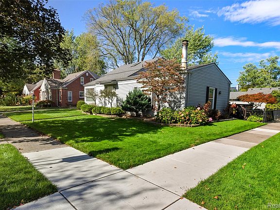 One-of-a-Kind Opportunity in the Desirable, Close-Knit Community of Huntington Woods! Situated on an extra-wide 62 x 125 corner lot, this unique 4-Bedroom, 2.5-Bath home offers more than 2,300 sq. ft. of beautifully designed living space & just two blocks from Burton Elementary, the Rec Center, Pool, Tennis Courts, & Library. Step into this expansive Bungalow, where a surprisingly large amount of living space awaits. The highlight of the home is the spectacular large Family Room, featuring a soaring 12-ft. ceiling, solid wood beams, a circulating fireplace w/ wood-front design, & windows providing lots of natural light. Perfect for entertaining, the space flows into the oversized eat-in Kitchen, complete w/ a granite island & bar seating, electric cooktop, bar fridge, lots of maple cabinetry & garden glass shelf window above the sink. The Kitchen opens to the generous Dining Room, ideal for hosting gatherings, & accented by a custom built-in stained-glass art piece. Opening to the cozy Living Room, offering built-in cabinetry & windows that brighten the room. The main level also includes 2 freshly painted Bedrooms & a stunning freshly painted Bathroom with a euro-style shower, granite-glass sink vanity, & linen closet. Upstairs, the Primary Suite offers exceptional space w/ a skylight, 2 Lg walk-in closets w/ built-ins, & a spa-inspired Primary Bathroom complete w/ a skylight, jetted tub, euro-shower w/ bench, granite vanity, & linen closet. A versatile 4th Bedroom - perfect for a nursery, office, or potential expansion, completes the upper level. The finished Basement adds more space, including a recreation area w/ wet bar, an office, laundry rm, & tons of storage. Step outside into your own backyard oasis, featuring a serene koi pond w/ waterfall, large deck, paver patio, full fencing, & lush landscape. A 2 1/2 car garage & new concrete driveway. With unmatched amenities, an exceptional lot, & a thoughtfully designed home, this is a rare Huntington Woods offering.