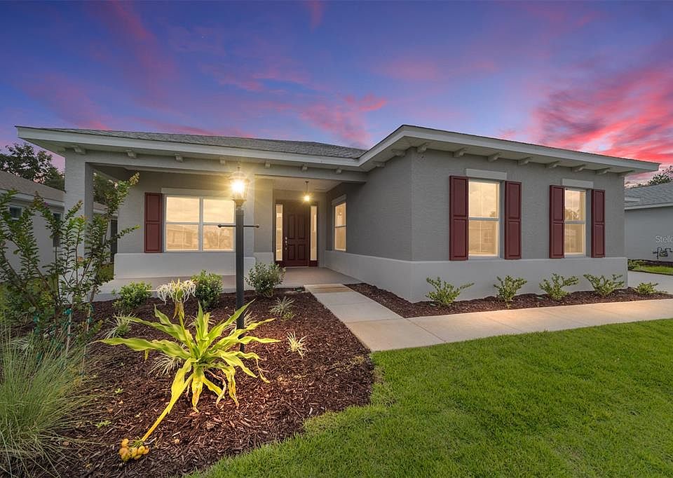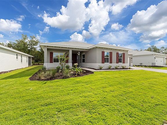 Elegant Magnolia Model in LongLeaf Ridge at On Top of the World! Discover refined living in this beautifully crafted Magnolia model, featuring 2 bedrooms, 2.5 bathrooms, a flex room with French doors, a 2-car garage, and a golf cart garage. Designed with an open floor plan and elegant tray ceilings, this home blends modern sophistication with everyday comfort. The gourmet kitchen is a chef’s dream, showcasing staggered cabinets with crown molding, quartz countertops, stainless steel appliances, a built-in oven and microwave, a range cooktop, under-cabinet lighting, a walk-in pantry, and a spacious L-shaped island perfect for entertaining. The dining area boasts four floor-to-ceiling windows overlooking the backyard, while the living area features a 4-panel sliding glass door leading to the screened lanai — all with no rear neighbors for added tranquility. The primary suite offers a serene retreat with a tray ceiling, 3-panel window overlooking the backyard, and a luxurious ensuite complete with dual quartz vanities, a zero-entry tiled walk-in shower with built-in bench, and a large walk-in closet. The guest suite includes its own private ensuite with a quartz vanity and tub/shower combination, providing comfort and privacy for guests. Experience the unmatched lifestyle of On Top of the World — Ocala’s premier 55+ active adult community offering world-class amenities, golf, fitness, swimming, and countless social activities designed to enhance every day.