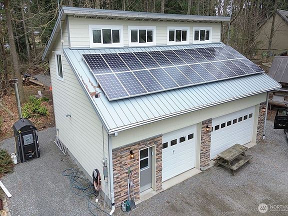 Waterfront Island Living meets Modern Comfort! Private Beach w/ New Wood Stairs, 90' of Deeded Tidelands, perfect for Clamming, Kayaking & Beach walks! 4259SF Designed for Multi-Generational Living w/Fully Finished Basement, Radiant Floor Heating Throughout, including the front Porch, No icy steps in Winter! Spiral Staircase adds Charm & Emergency Exit! Chef's Kitchen w/Bar Seating for Entertaining & everyday Living! Utility Mudroom w/WD Hookups, sink, counter space, and Pantry! Detached 3 Car Gar/Shop w/Radiant Heated Floors,3/4 Bath & Newer HW Tank! Spacious workshop above, perfect for Crafts, Hobbies! Lots of Upgrades, Paint, Carpet, Lights, Faucets, Newer Boiler System & More! Serene Setting W/Stunning Views! This is a Must See!
