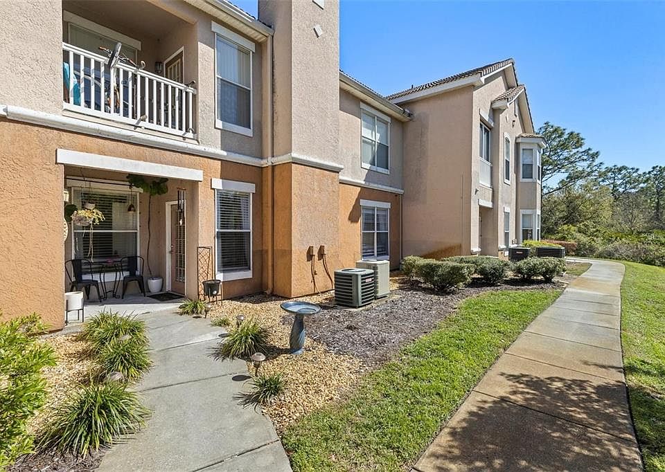 Welcome to this stunning 2-bedroom, 2-bathroom condo that perfectly balances modern elegance with peaceful living. Tucked alongside a lush conservation area, this home offers breathtaking, uninterrupted nature views from every room — a rare and treasured feature that brings the outdoors in. Step inside to discover an open, light-filled floor plan that flows seamlessly from the kitchen to the living and dining areas — ideal for relaxing evenings or entertaining guests. The split-bedroom design provides exceptional privacy, with each bedroom featuring its own ensuite bathroom and generous walk-in closet. The bathrooms exude a spa-like feel, complete with soothing tub-and-shower combinations, modern fixtures, and ample counter space. Step out to your private patio — the perfect spot for your morning coffee, quiet reading, or evening unwinding — enhanced by an extra storage closet for convenience. 2021 UPDATES: New HVAC system (compressor, air handler, thermostat — with closed permits), Fresh interior paint & cabinet refinishing, Vinyl flooring with new shoe molding, Granite kitchen countertops + large sink & Moen faucet, Bosch dishwasher, GE refrigerator, LG washer & dryer, Bathroom upgrades: new vanities, faucets, soft-close toilets, exhaust fans, shower hardware, Updated lighting, cordless blinds, and secure door hardware. 2023 UPDATES: New stainless steel dishwasher, New water heater. 2025 UPDATE: Fresh interior paint. Enjoy a wealth of upscale community amenities, including: Sparkling resort-style pool, Fitness center with cardio & weight equipment, Clubhouse for gatherings and events, Dog walk area & playground, 200+ cable channels (including HBO) and high-speed protected WiFi, Comprehensive maintenance (grounds, buildings, garbage, and roads), Security cameras for peace of mind, Scenic lake with fountain and abundant local wildlife.