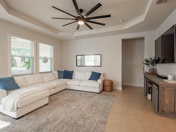 Outside, you'll find a well-maintained yard and a covered patio, ideal for enjoying the Florida weather year-round.